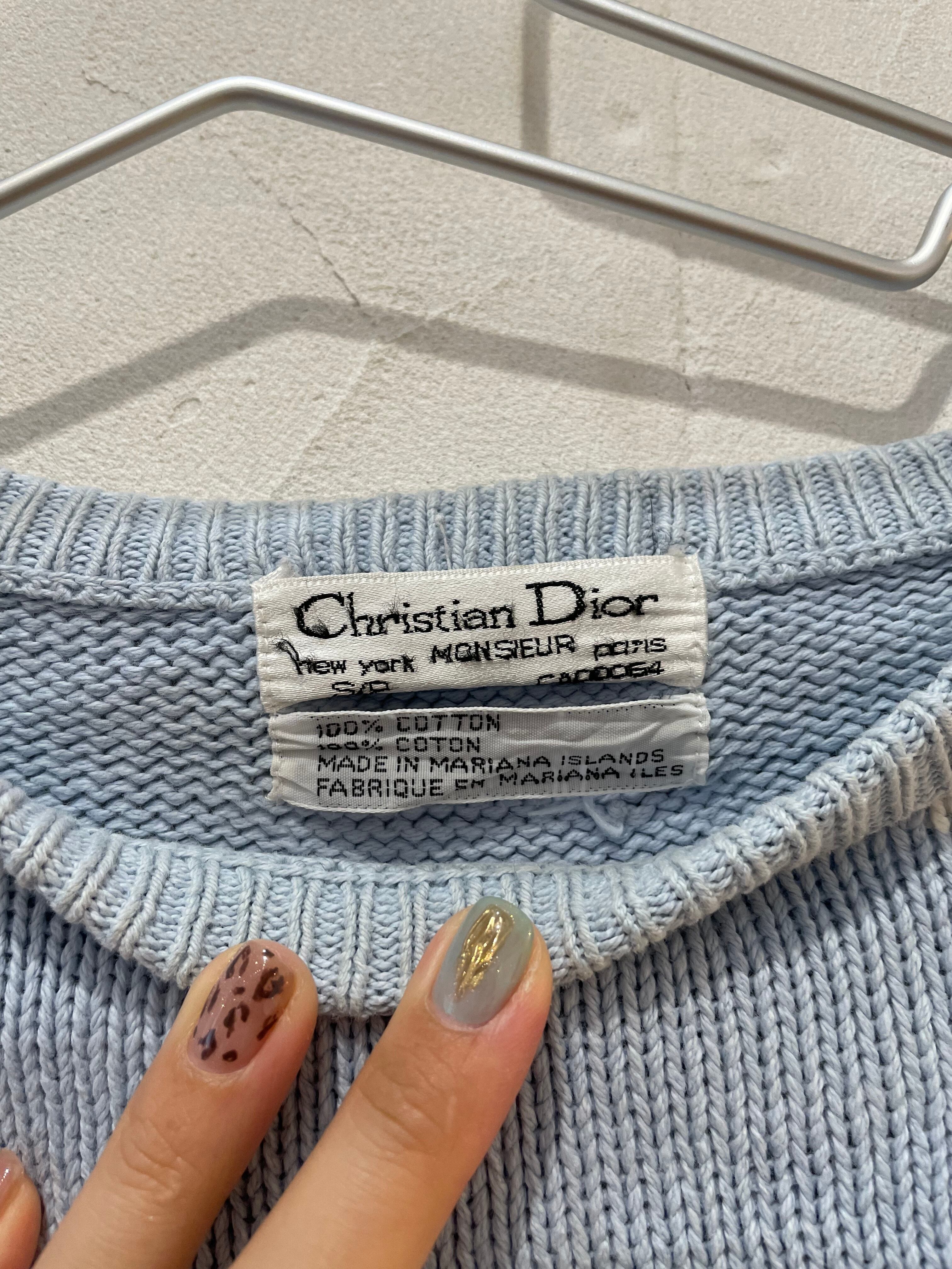 Christian Diolの水色と白色のシンプルなバイカラーのコットンニットです